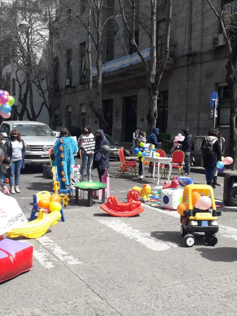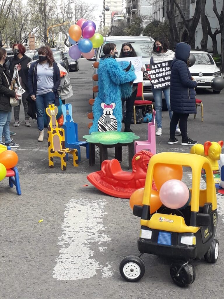 Dueños de salones de eventos se concentraron en las puertas del municipio con juegos inflables para visibilizar el difícil momento que atraviesa el sector.