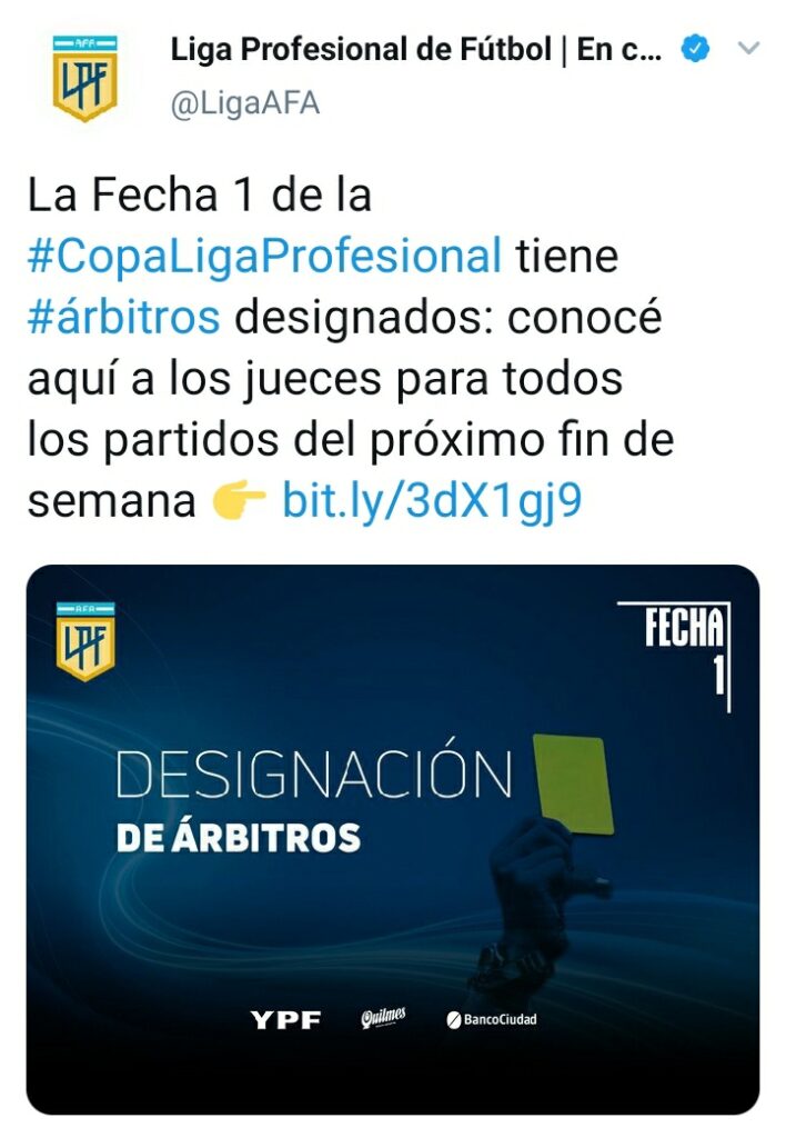 La Liga Profesional confirmó este lunes quiénes serán los jueces de los encuentros de la primera jornada del campeonato, que arrancará el viernes con Diego Abal en Gimnasia frente a Patronato y tendrá a Jorge Baliño el sábado en el Minela, con Aldosivi ante Estudiantes.