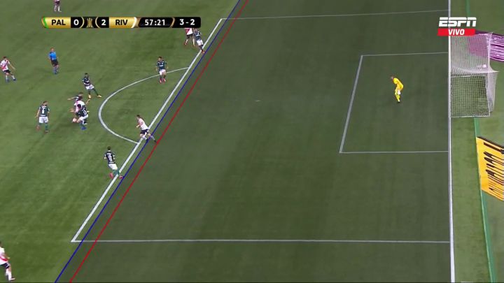 A los seis minutos del segundo tiempo, River completó la hazaña. La pelota fue de lateral a lateral. Un centro de zurda de Angileri terminó en la orilla opuesta del área. Allí apareció Gonzalo Montiel, quien empalmó de derecha sin pensarlo dos veces. Weverton miró la pelota, que se incrustó en su arco y se transformó en el 3-0 de los argentinos. Sin embargo, y tras casi cinco minutos de deliberación, el árbitro uruguayo Ostojich anuló la conquista a instancias del VAR, manejado por Nicolás Gallo. En la repetición se vio cómo Borré vuelve de la posición adelantada para intervenir en la jugada.