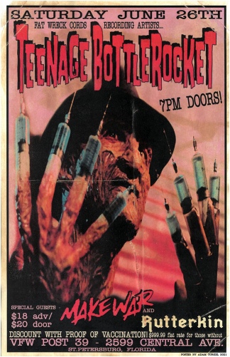 Los fans de las bandas punk Teenage BottleRocket, MakeWar y Rutterkin pueden acudir al concierto del 26 de junio en la costa de San Petersburgo, Florida (sureste), por un precio de descuento de 18 dólares si pueden probar que están totalmente vacunados.