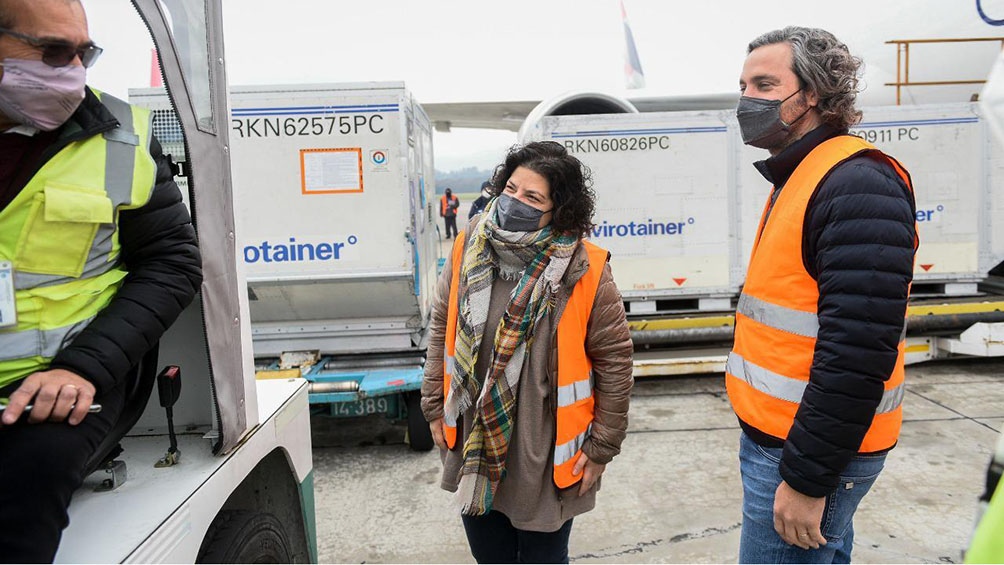 La aeronave Boeing 767, de la compañía Latam Cargo Colombia, bajo el número UC1407, aterrizó en el aeropuerto internacional de Ezeiza a las 10 después de haber partido a las 0.32 desde la ciudad estadounidense de Miami, con 1.139.000 dosis de vacunas en sus bodegas y fue recibido en Ezeiza por el jefe de Gabinete, Santiago Cafiero, y la ministra de Salud, Carla Vizzotti.