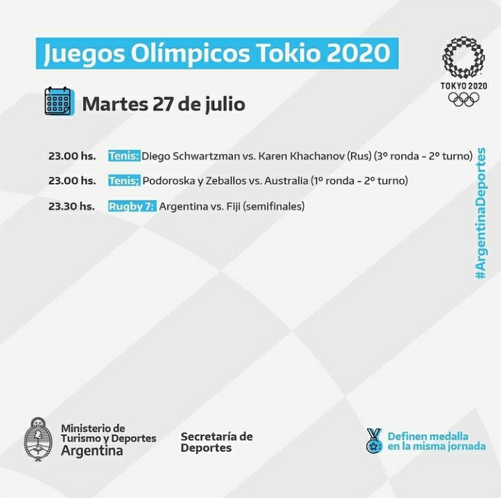 Luego del gran triunfo frente a Australia por 19 a 14 y con un hombre menos desde los dos minutos, el combinado de rugby seven buscará ser finalista y asegurarse una presea esta noche, desde las 23.30, frente a Fiji en los Juegos Olímpicos de Tokio, que tendrán a Schwartzman en tercera ronda y el debut del dobles mixto, con Podoroska y el marplatense Zeballos, en tenis.