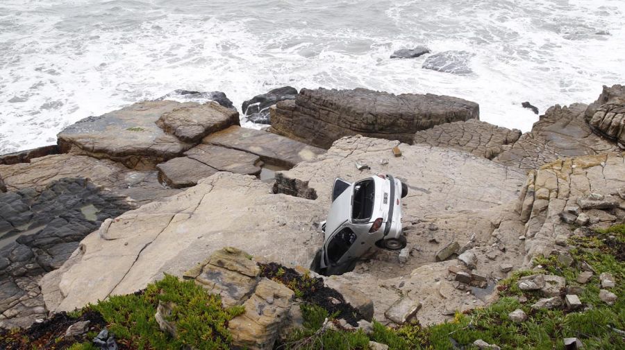 Un impactante accidente se registró esta mañana en Mar del Plata cuando un auto se despistó, cayó de las barrancas y quedó incrustado entre dos roca a escasos metros del mar. La conductora del vehículo sufrió politraumatismos leves.