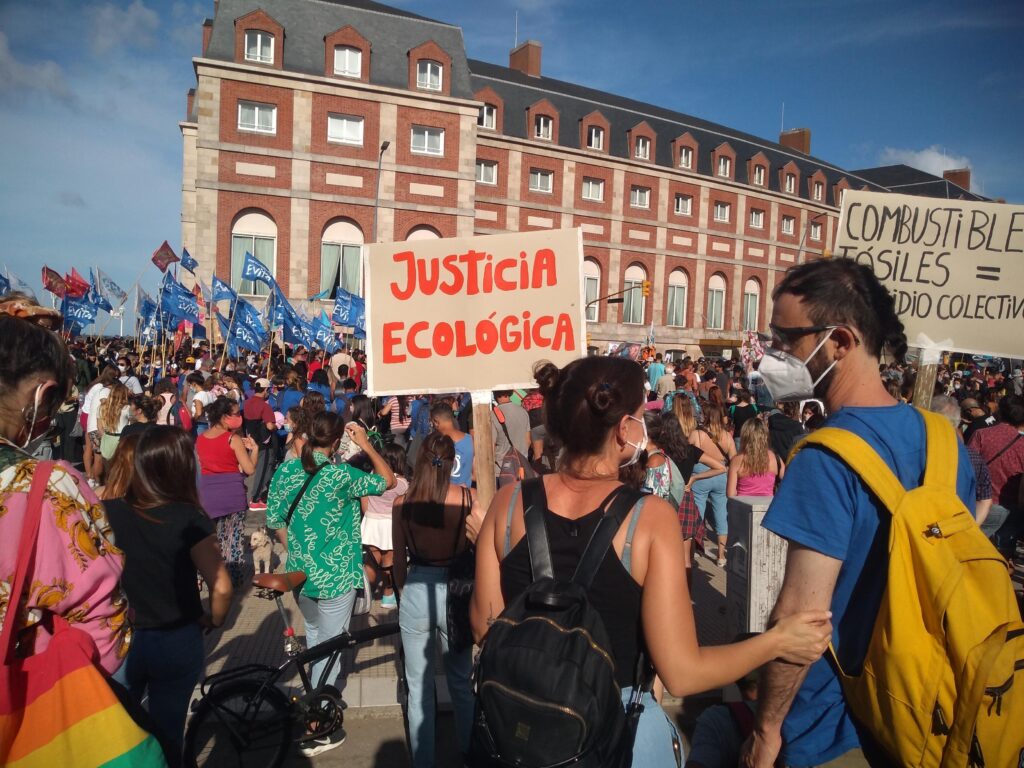 Miles de manifestantes llegaron a las 17 y se concentraron frente a la plazoleta Almirante Brown con diferentes cánticos y consignas. De la movilización participaron organizaciones ambientalistas y políticas, ciudadanos marplatenses y turistas.