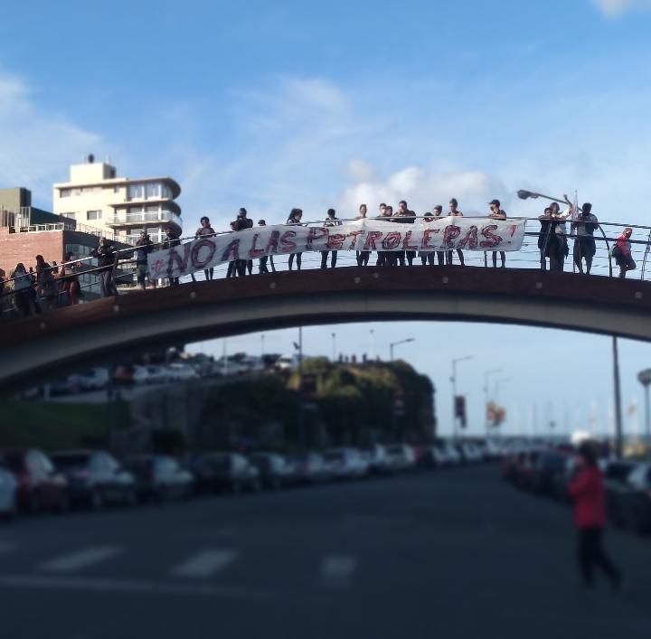 Organizaciones ambientalistas y políticas, ciudadanos marplatenses y turistas se congregaron en La Rambla en contra de la explotación petrolera en la costa bonaerense.