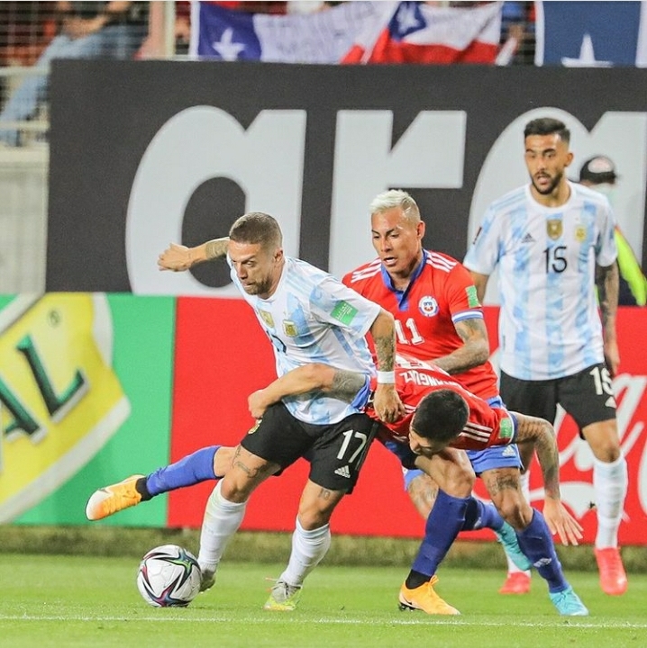 Cambios: PT 34′ Brayan Cortés por Bravo; ST 0′ gabriel Suazo por Vegas, 14′ Joaquín Montecinos y Mauricio Isla por Núñez y Díaz y 39′ Víctor Dávila por Vargas (Ch); ST 24′ Marcos Acuña y Giovanni Lo Celso por González y De Paul, 32′ Julián Álvarez por Lautaro Martínez y 39′ Ángel Correa por Di María (A).