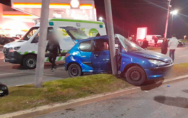 Esta madrugada, personal de Comisaría Séptima concurrió a llamado al 911 en Avenida Constitución y Derqui, donde se había producido un accidente de tránsito. En el lugar los efectivos constataron que, por razones a establecer, un vehículo Peugeot 206 conducido por un joven de 19 años, había embestido un poste de la luminaria del cantero que divide los carriles de la avenida.