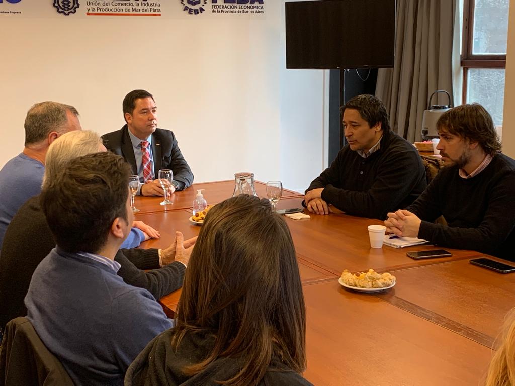 En la sede de la Unión del Comercio, la Industria y la Producción de Mar del Plata (UCIP) tuvo lugar un encuentro de trabajo sobre la actividad exportadora local del cual participaron empresarios, dirigentes de UCIP y el Director de la Agencia Argentina de Inversiones y Comercio Internacional dependiente de Cancillería, Martin Navarro.