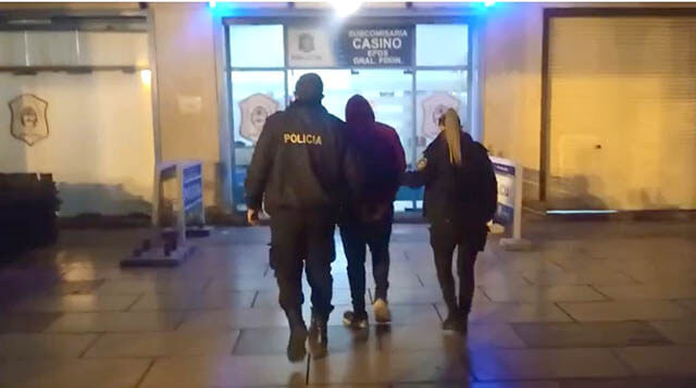 Según informó la policía en su parte de prensa, personal de Subcomisaría Casino fue alertado por empleados del Casino Central que al expulsar del lugar a un sujeto que se tornó agresivo al perder en el juego, éste comenzó a patear una moto Zanella 150cc. (chopera) estacionada en la vereda, la cual resultaba propiedad de otro cliente del lugar de 45 años.