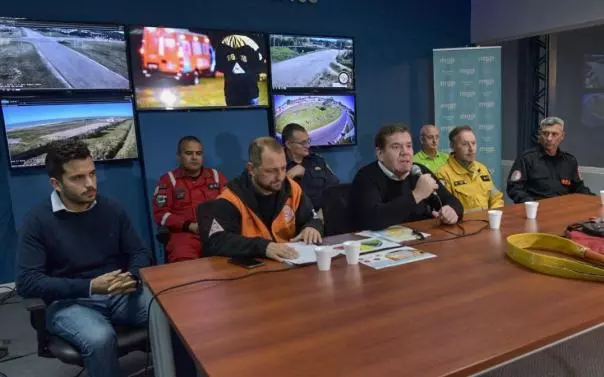 Estuvieron presentes integrantes de las fuerzas que intervienen de formar directa ante este tipo de eventos: Rodrigo Goncálvez, titular de Defensa Civil; Diego Islas, en representación del jefe de Bomberos, Alberto Gabba; Pablo Aguirre, director de Rescate y Riesgos Especiales en Mar del Plata; Juan Di Mateo, director del SAME; Sergio Mustafá, jefe de Bomberos voluntarios; y Pablo Polarolo, comisario de la Brigada Forestal y referente sobre la problemática de incendios forestales a nivel nacional.