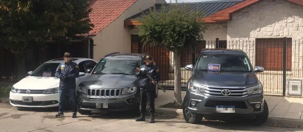 Con el total de las pruebas recabadas, el Juzgado Federal N° 1 del Dr. Santiago Inchausti, Secretaría de Actuación del Dr. Pedro Federico Hooft se ordenó un total de 17 allanamientos, donde se procedió al secuestro de más de 130 camionetas de media y alta gama, más de 40 autos de media y alta gama, 70 motovehículos (incluidas 2 motos de agua), varios camiones, 1 Pistola Glock 19 calibre 9mm Parabellum, 1 escopeta marca Ruger M77 calibre 7mm, 1 pistola Glock modelo 22 calibre 40 plg Smith Y Wesson, 1 escopeta Remington 870 calibre 12, 1 pistola Bersa Thunder calibre 9mm, 1 escopeta Sarsilmaz calibre 12/70 Mm, 1 revólver marca Smith y Wesson, varias municiones de distintos calibres, la suma de 1.373.750 pesos , 7 notebooks, 2 CPU, 7 teléfonos celulares y diferente documentación vinculada la causa.