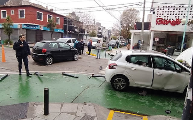 Dos automóviles colisionaron en la esquina de Güemes y Castelli. De milagro no hubo heridos. Producto del impacto fueron derivados varias de las protecciones para los peatones.