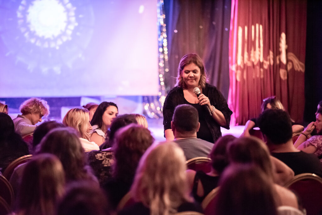 MEDIUMNIDAD se denomina este espacio, en el que Noelia introduce al público sobre las etapas del duelo, en la meditación y, además de dialogar con la platea como la caracteriza, invita a grupos de espectadores a subir al escenario y compartir sus inquietudes, preguntas, sobre aquellos que ya partieron de este plano.