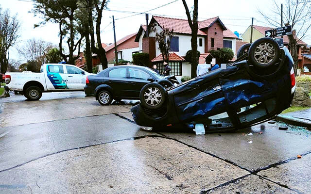 Se requirió también, la presencia de personal de Bomberos atento a que uno de los vehículos había volcado en el lugar.