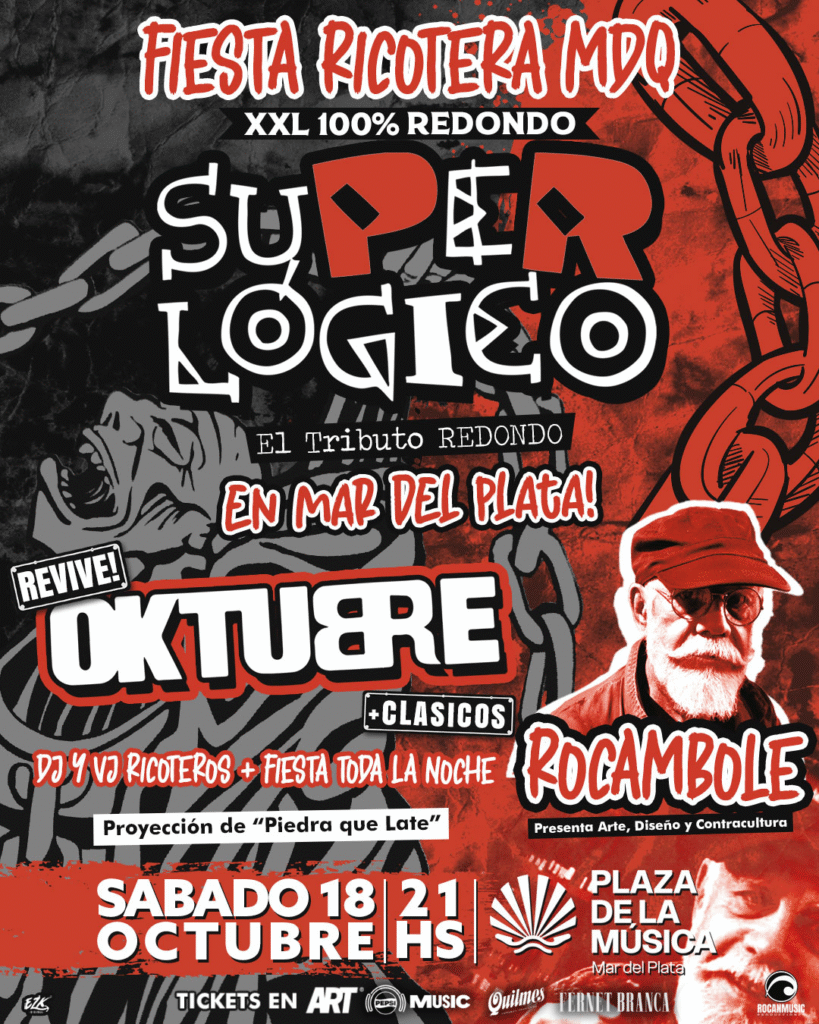 Uno de los tributos de Patricio Rey y sus Redonditos de Ricota más importantes de la escena se presentará en Mar del Plata el próximo sábado 18 de octubre. Superlógico revive Oktubre, el segundo disco de estudio de la exbanda de Indio Solari, en la Plaza de la Música (Constitución 5780). Las entradas ya están a la venta por Articket.