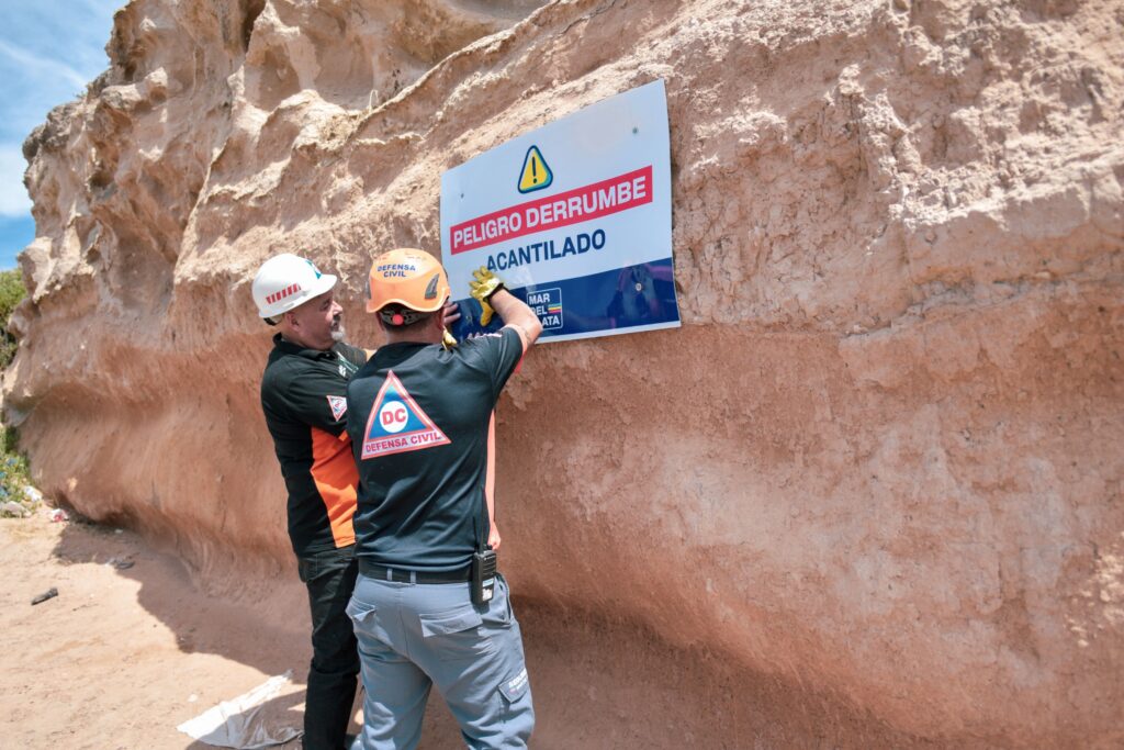 El municipio, a través de Defensa Civil, avanza con la colocación de nuevos carteles informativos y preventivos en distintos sectores de acantilados de la costa, con el objetivo de advertir sobre los riesgos existentes y promover conductas responsables tanto en vecinos como en visitantes.