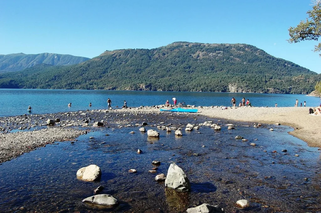 A orillas del Lago Lácar, a pocos kilómetros de San Martín de los Andes, esta playa de piedras es una de las más pintorescas de la Patagonia. Lonely Planet señala que cuenta con sectores de aguas tranquilas, ideales para familias y niños, y un paisaje que combina bosque y lago/NA