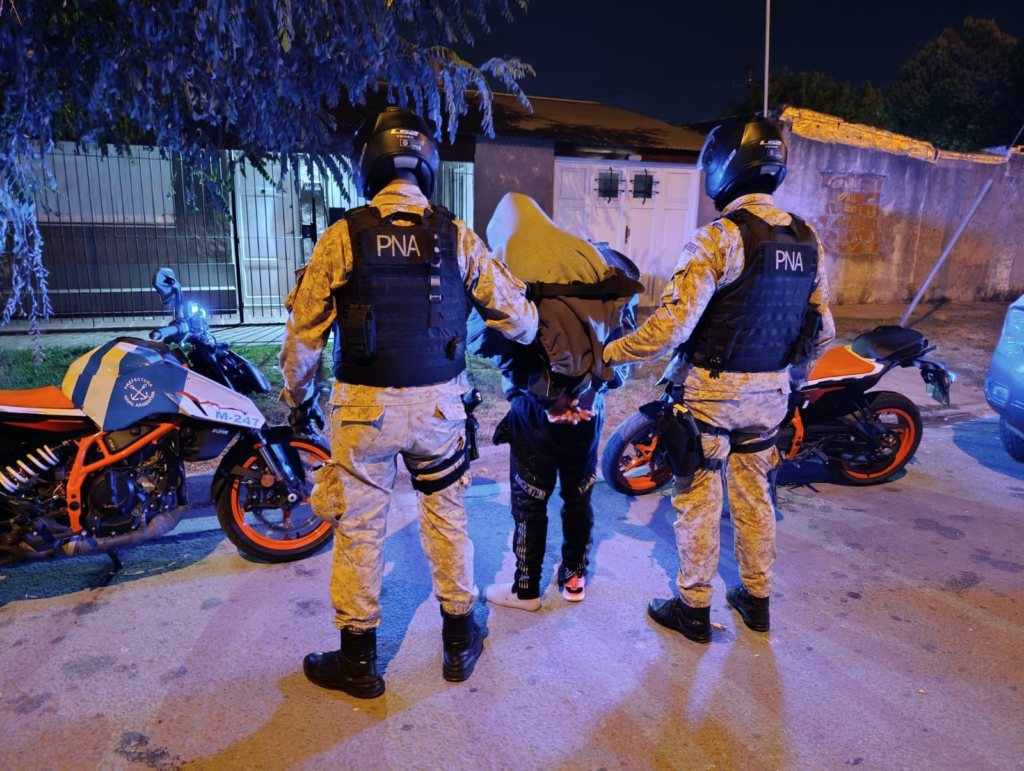 El hecho ocurrió en el marco de tareas de patrullaje, donde personal de la Fuerza observó a un hombre a bordo de una moto, quien, al notar la presencia de los uniformados, se dio a la fuga, lo que generó el seguimiento.