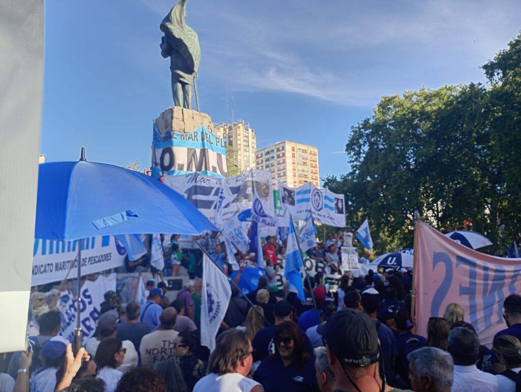 Si bien la protesta tuvo menos convocatoria que las dos anteriores, miles de personas se convocaron en la Plaza Rocha (Av. Luro y 14 de julio) y marcharon hasta el Monumento a San Martín, donde los referentes de los principales sindicatos tomaron la palabra.