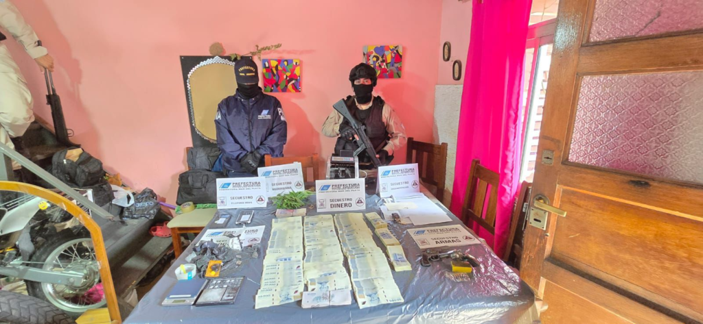 Durante el procedimiento, se secuestraron más de 16 millones de pesos en efectivo, cocaína, plantines de cannabis, dos armas de fuego cortas y municiones.