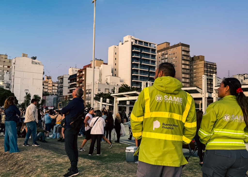 En Plaza España se dispuso uno de los principales dispositivos de asistencia, con presencia de Defensa Civil, personal de la Dirección de Niñez y Juventud, equipos del SAME y voluntarios de la Cruz Roja. En ese punto también funcionó un móvil del servicio de atención 102, la línea gratuita de asistencia y recepción de denuncias vinculadas a la niñez.