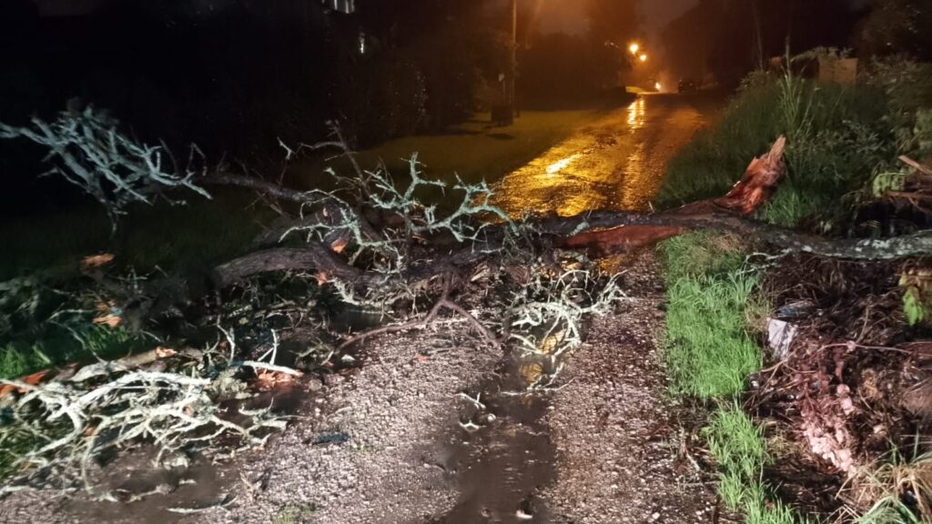 Desde Defensa Civil indicaron que en lo que va de la noche “la situación se mantiene tranquila”, más allá de la caída del poste y cables, y el árbol en la vía pública.